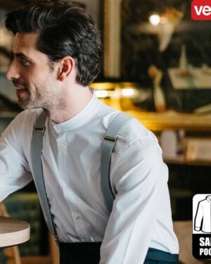 Fermeture boutonnée avec rabat. Col italien. Empiècement à l’avant et dans le dos. Poignets boutonnés (2 positions). Bouton de rechange. Tissu stretch. 2 poches poitrine avec rabat et bouton.