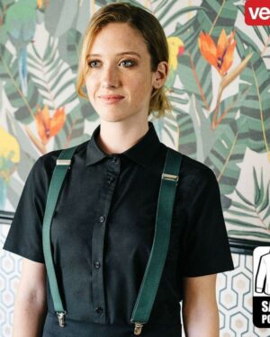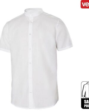 Cette chemise à personnaliser en coupe cintrée à manche courtes comporte une patte avec 7 boutons ton sur ton, un col à boutons unique ainsi que des pattes avec pinces…