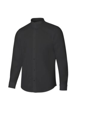 Fermeture boutonnée avec rabat. Col mao. Empiècement dans le dos. Poignets boutonné. Bouton de rechange.
