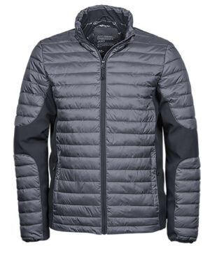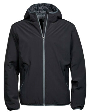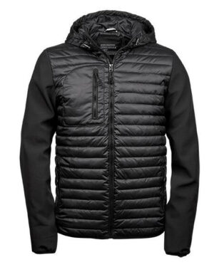 Poche poitrine zippée. Capuche ajustable. Zips qualitatifs. Bi-matière: polyester matelassé et softshell. Taille ajustable. Poignets élastiqués. 2 grandes poches avant. Poche intérieure. Look sportif.