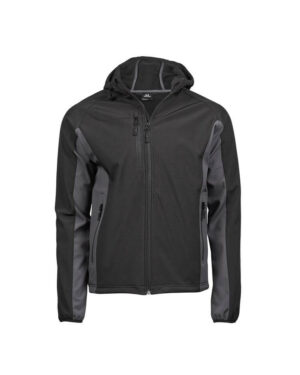 Veste Softshell à capuche bicolore. Coupe ajustée. 2 poches frontales. Capuche et taille ajustables. Poche poitrine. Poignets élastiqués. Imperméable à 8000 mm. Respirant à 6000 gr. Coupe-vent.