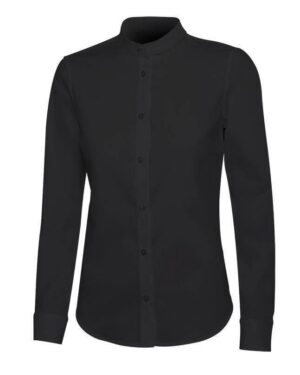 Fermeture boutonnée avec rabat. Col mao. Pinces avant et arrière pour une coupe cintrée. Empiècement dans le dos. Poignets boutonné. Bouton de rechange.