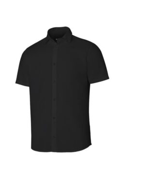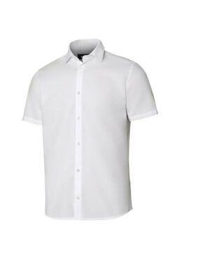 Cette chemise à personnaliser en coupe cintrée à manche courtes comporte une patte avec 7 boutons ton sur ton, un col à boutons unique ainsi que des pattes avec pinces…