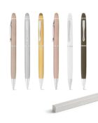 | Caractéristiques | Stylo bille en métal avec pointe tactile. Disponible dans des couleurs élégantes. Encre bleue. Fourni avec une boîte cadeau non assemblée. ø10 x 141 mm, Coffret: 150 x 15 x 19 mm |