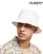 Chapeau en coton organique – Bord large et incliné, orné de coutures croisées. Chapeau seau de couleur unie.