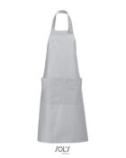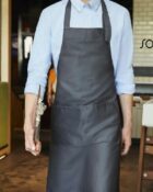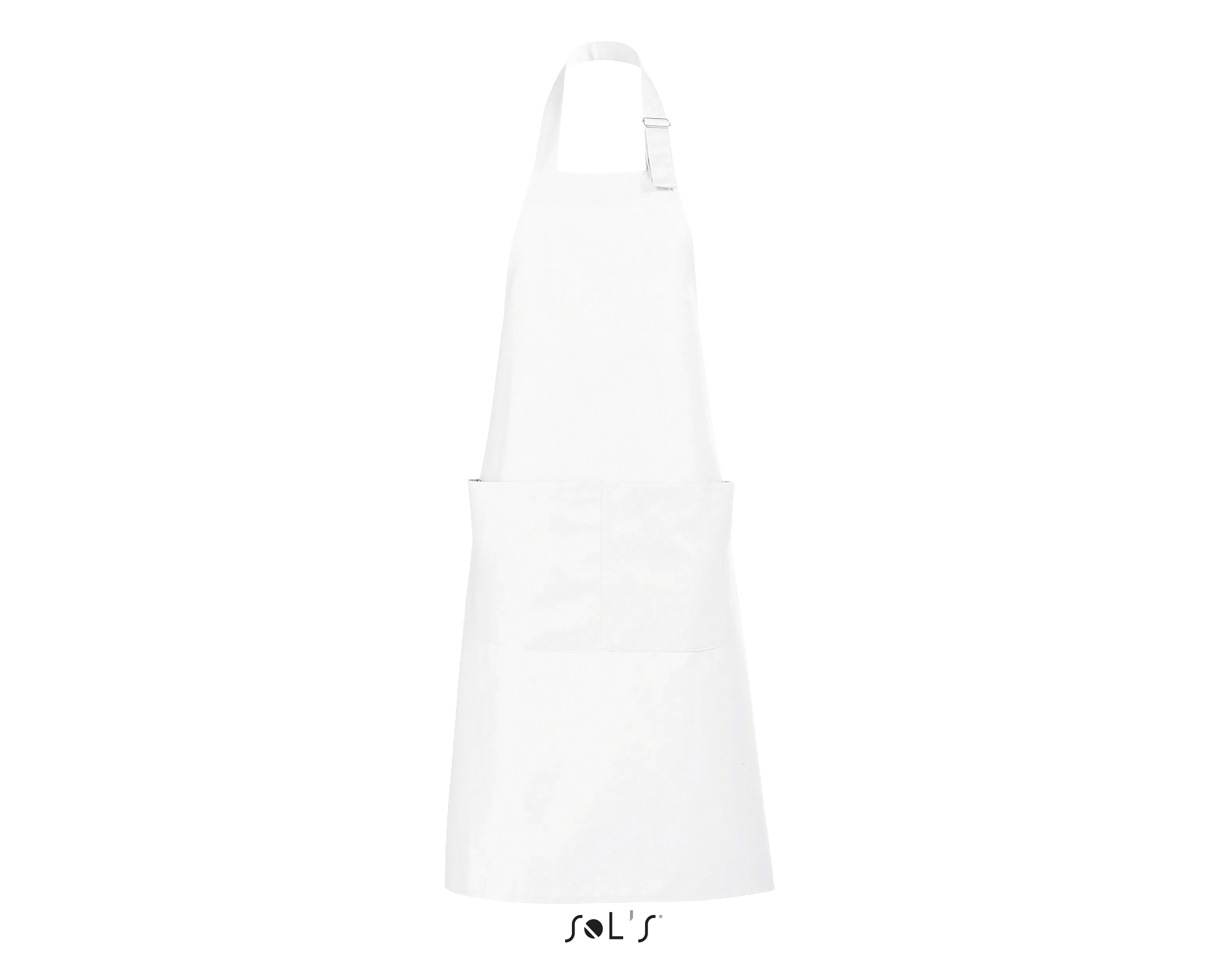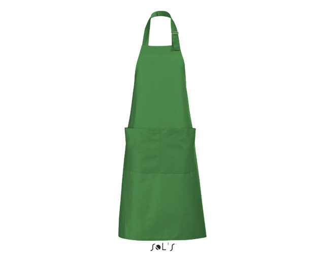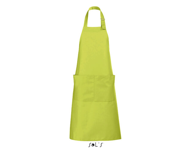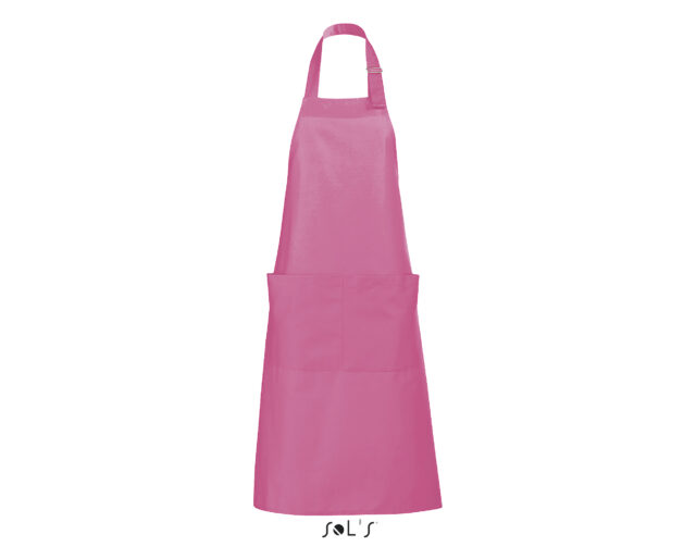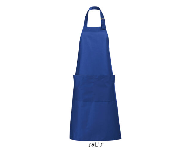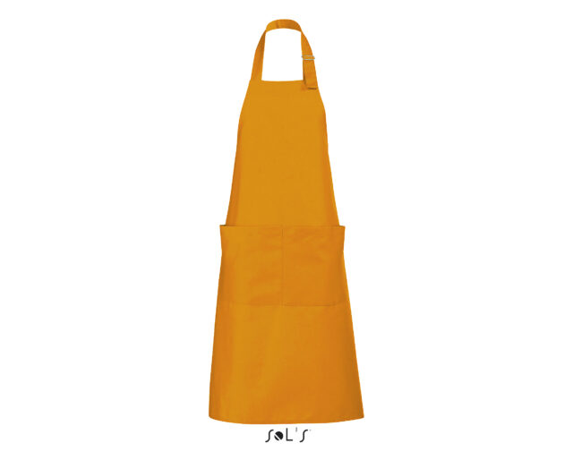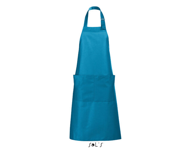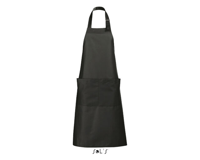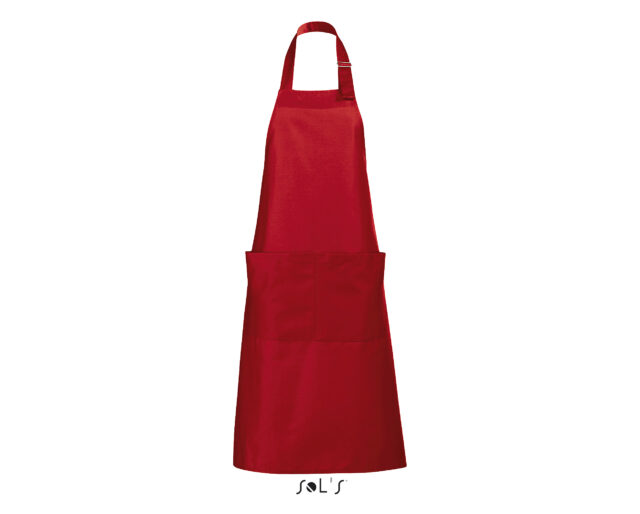 Ce tablier de cuisine personnalisable pour homme et femme possède une grande poche à l’avant avec double compartiment. L’encolure est réglable grâce à un passant métallique ajustable.