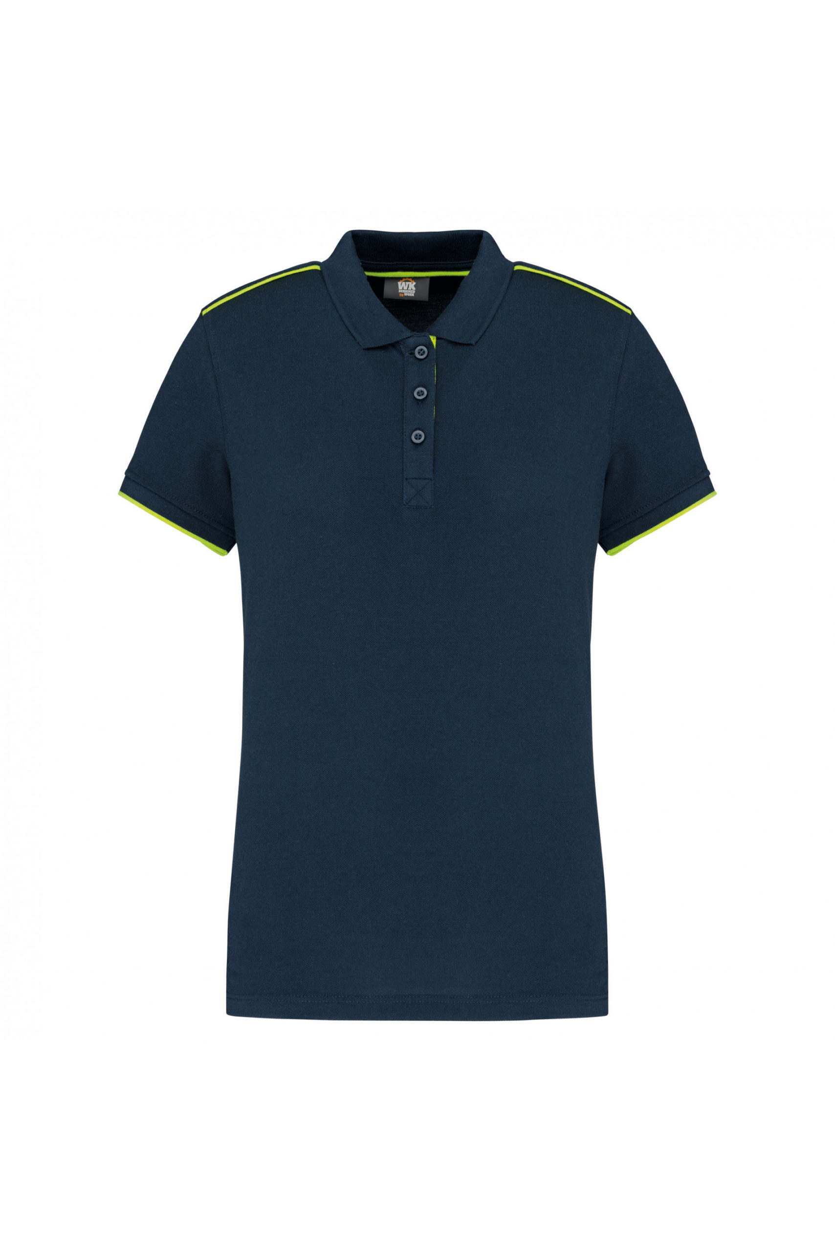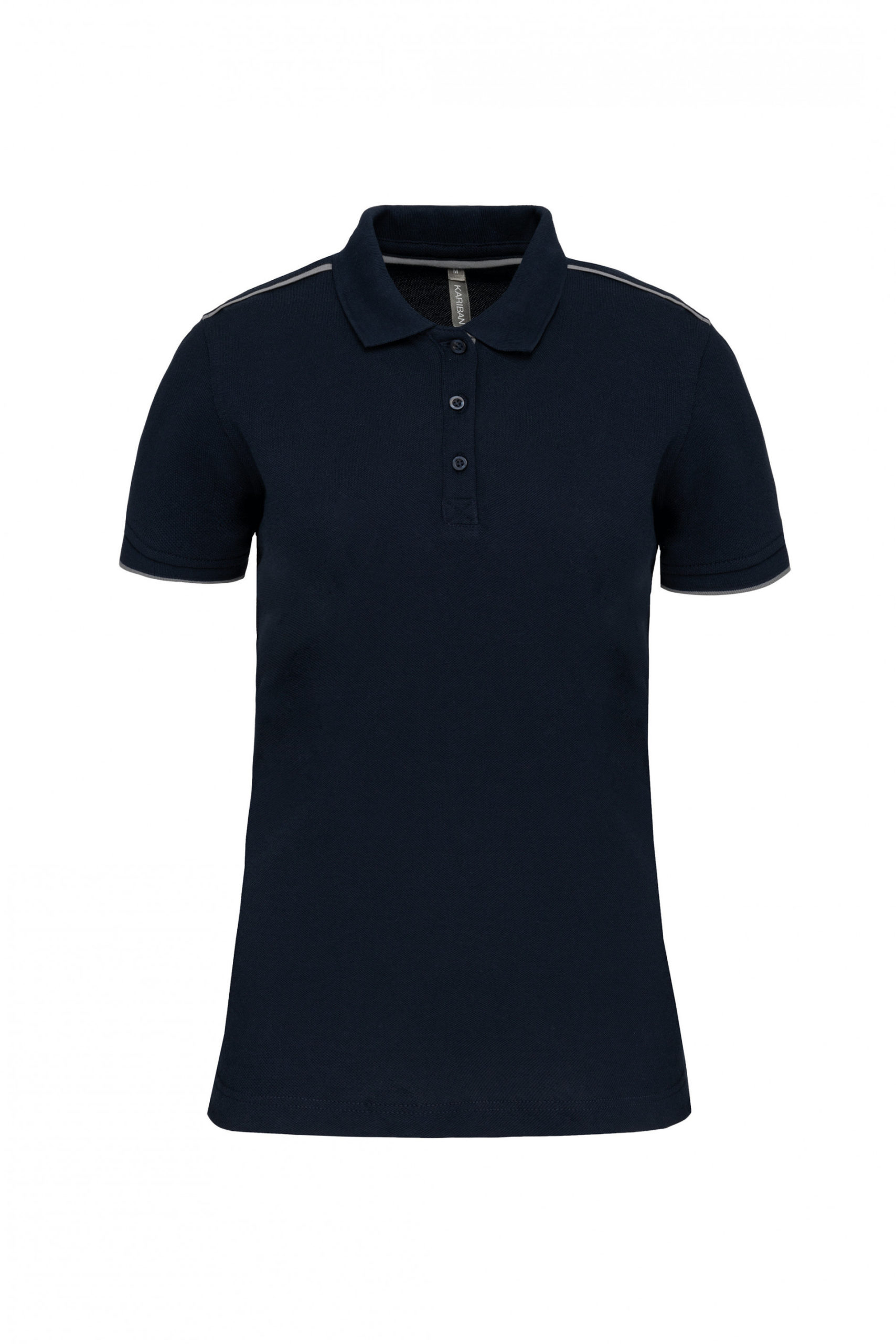 Ce polo personnalisable pour femme à manches courtes a été élaboré en coton peigné et en maille piqué pour un porter souple et agréable. Le col en bord-côte contient une patte de boutonnage avec 3 boutons, une bande intérieure contrastée et de propreté, il est aussi accompagné d’un passe poil contrasté intérieur comme pour les épaules. Les fentes latérales ont une bande chevron contrastée pour plus de confort. Le bas du vêtement est fini à la double aiguille et les manches sont finis en bord-côte avec en bas un liseré contrasté.