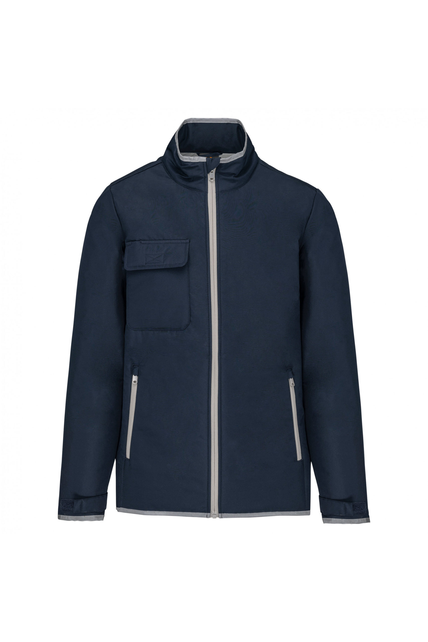 Ouverture zippée Finition bord côté col, poignets et bas de vêtement 2 poches à rabat pressionné 1 poche manche zippée Doublure ton sur ton