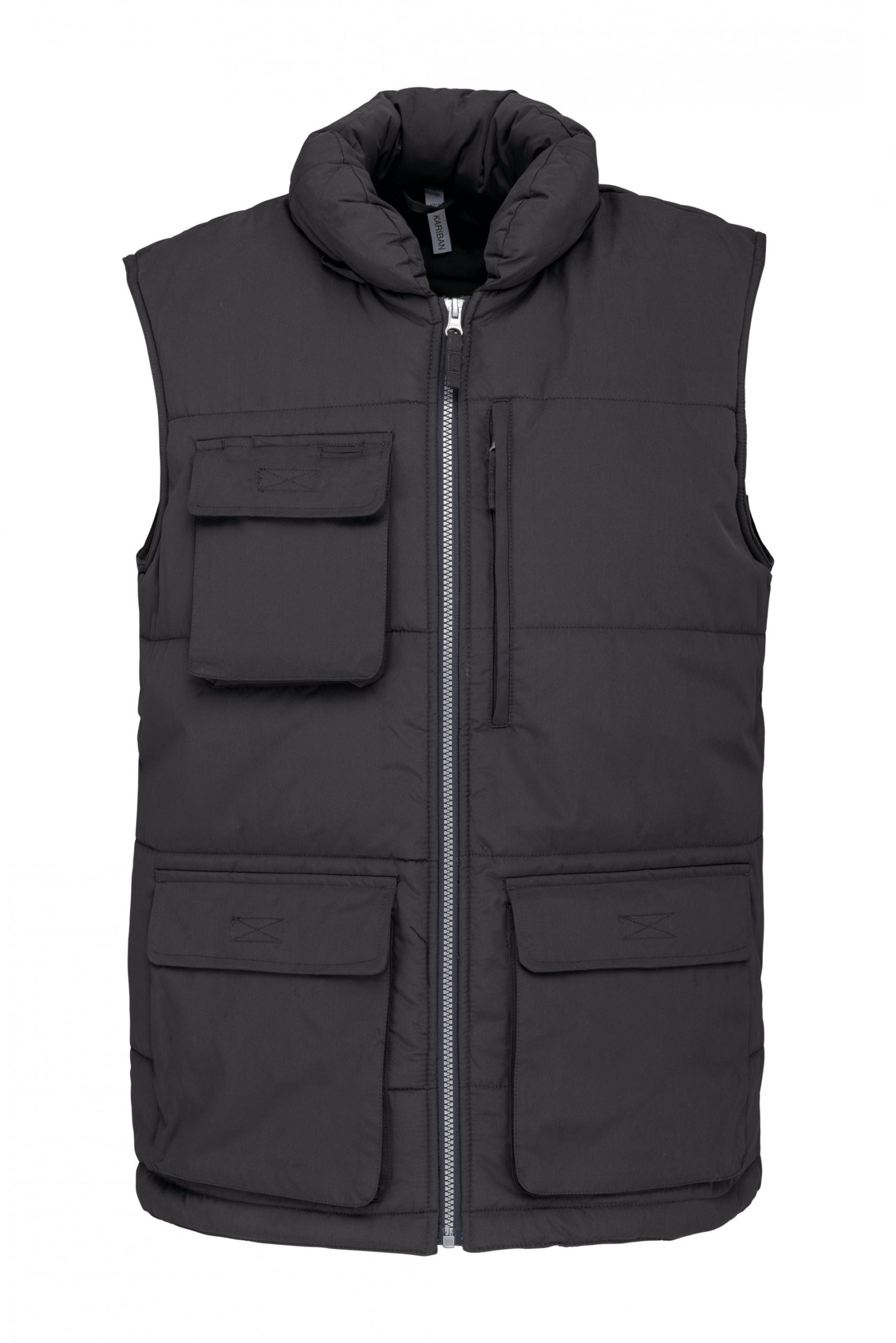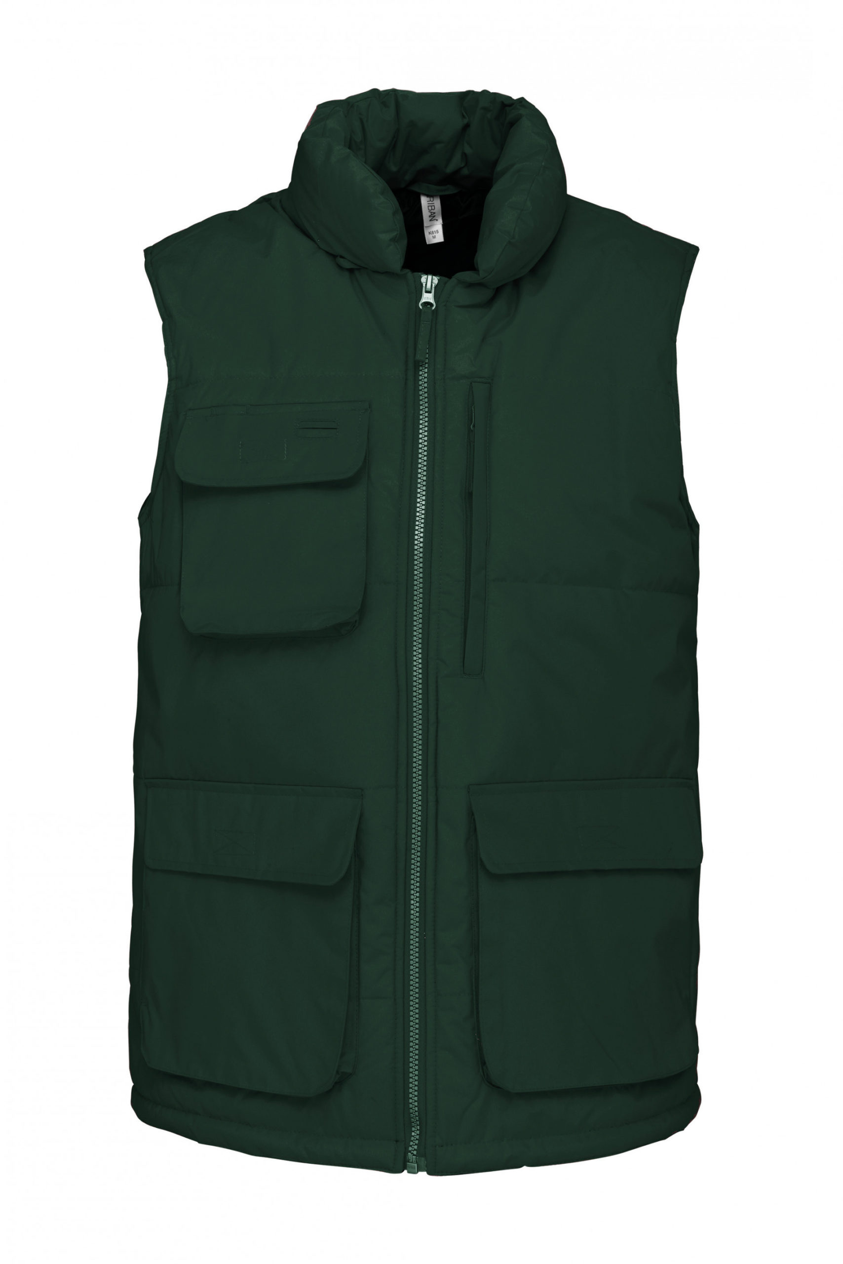 100% polyester. Microfibre enduction PVC imperméable 1500 mm. Doublure + ouate 100% polyester. 4 poches extérieures : 2 poches en bas à soufflets avec rabat auto-agrippant. 1 poche poitrine à soufflet avec rabat + passe-fil pour écouteurs. 1 poche zippée côté cœur. 1 poche intérieure zippée. Col matelassé avec passant écouteurs. Cordon de serrage au bas de vêtement. Fermeture zippée plastique argenté. Zip de personnalisation